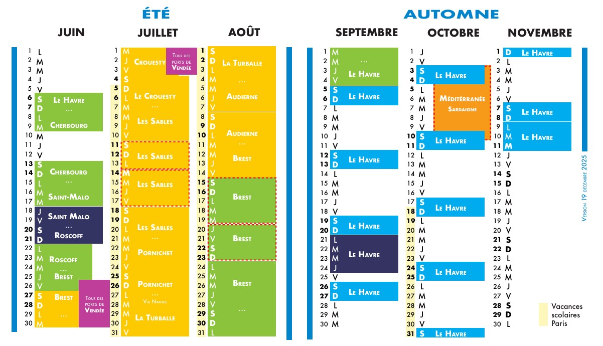Le calendrier des navigations